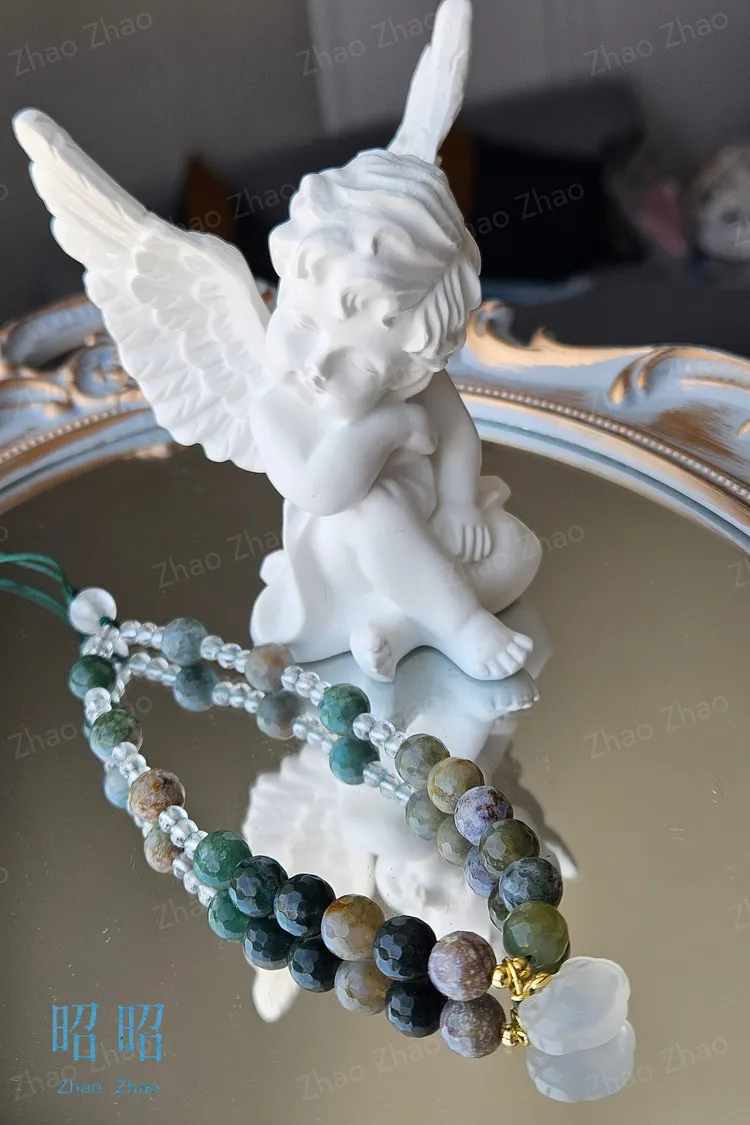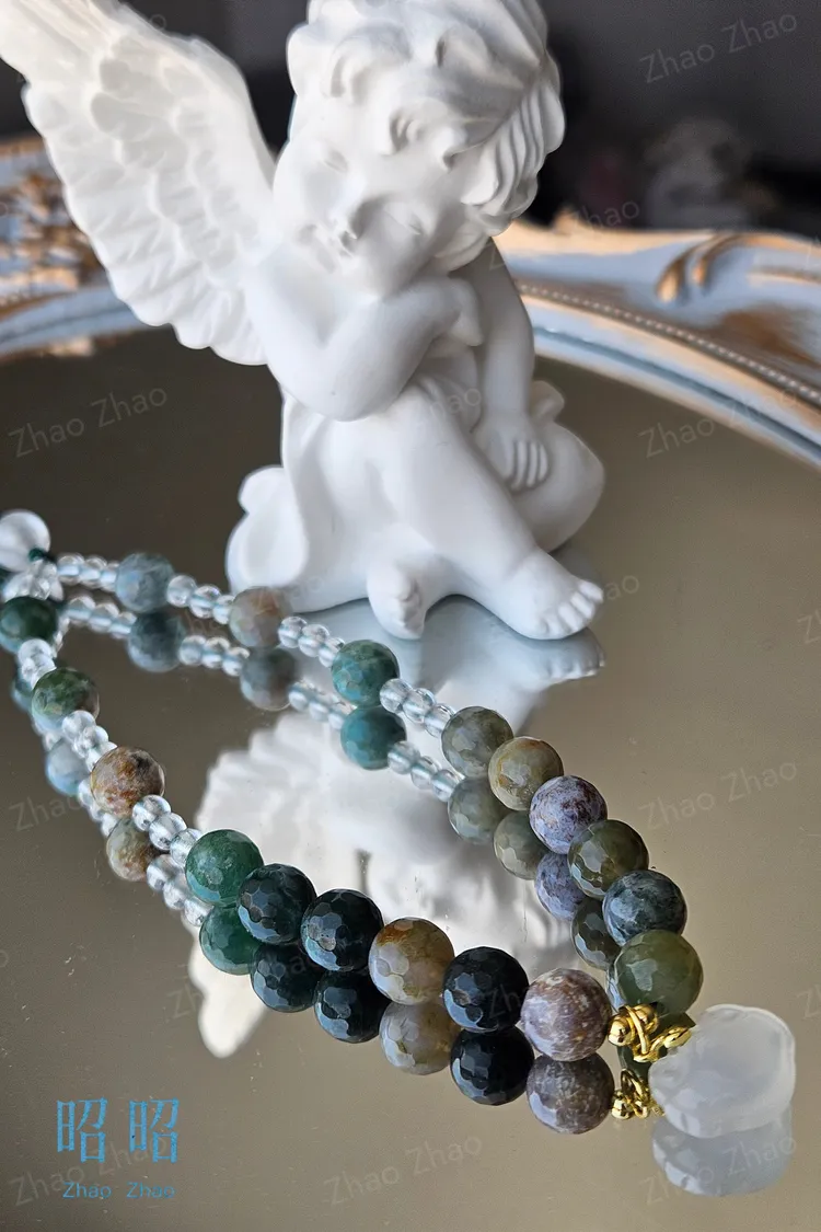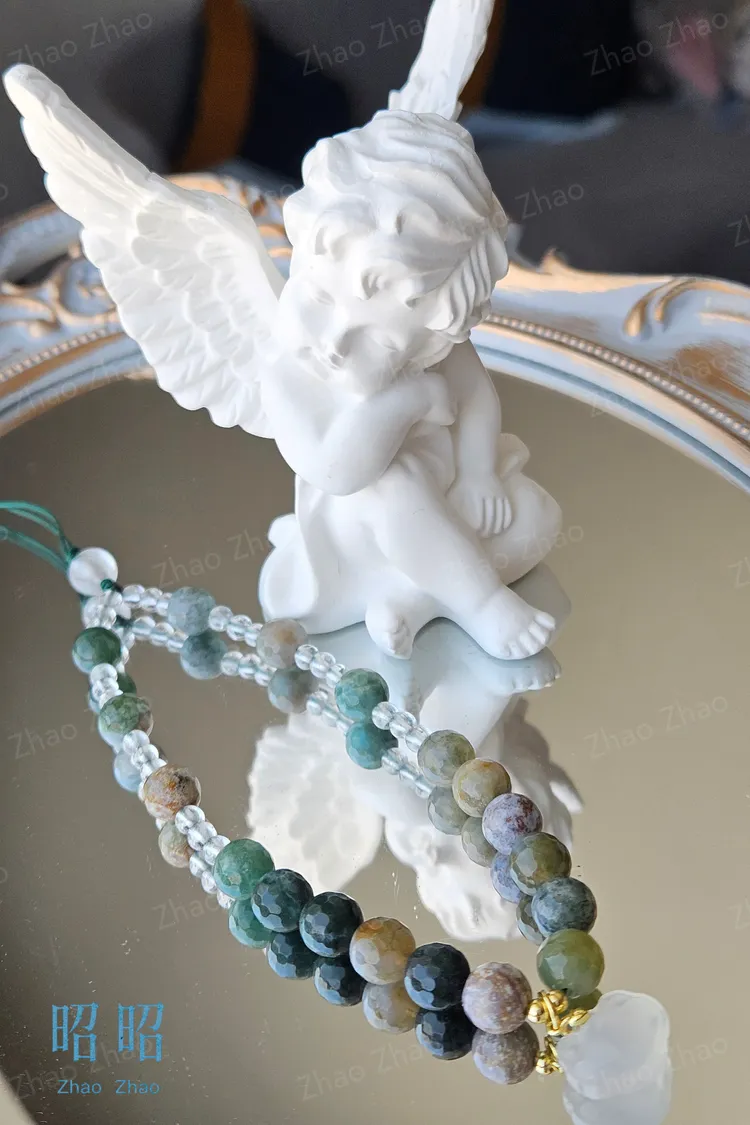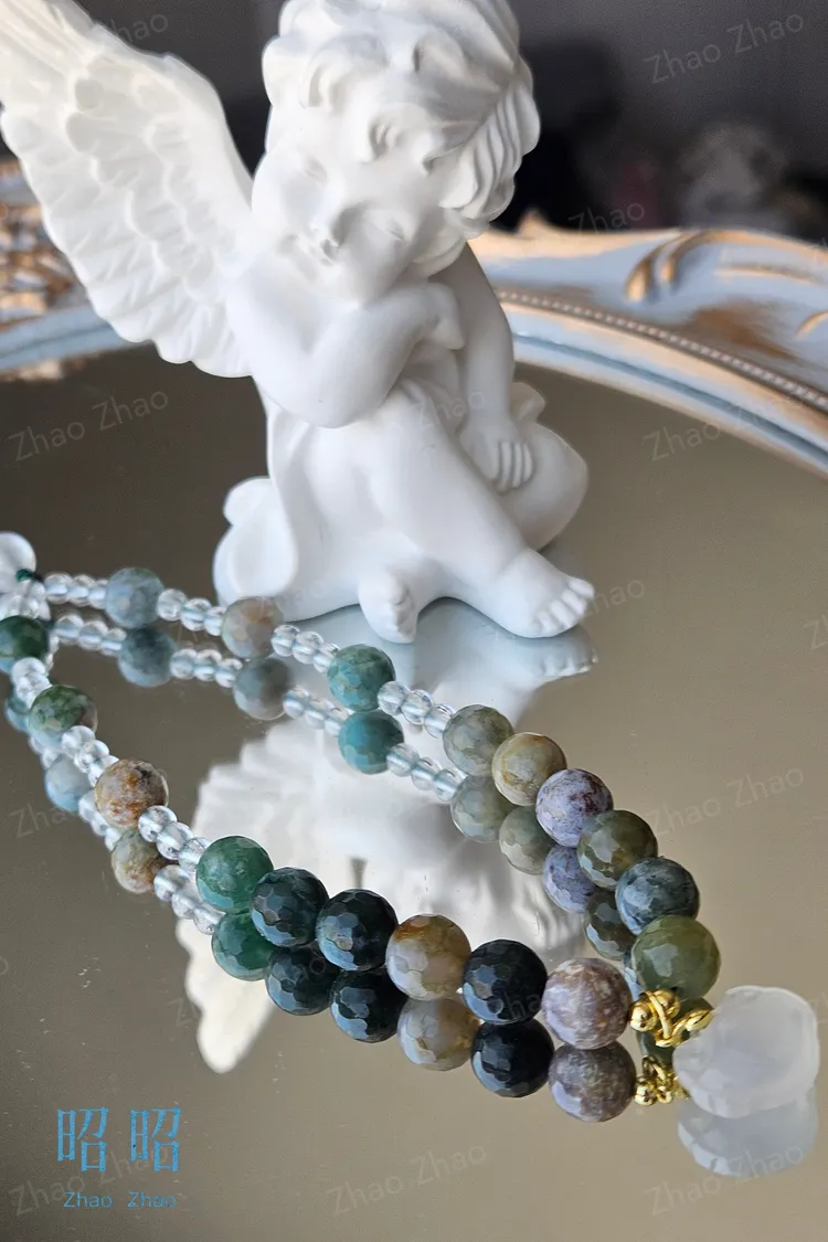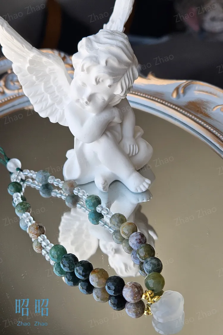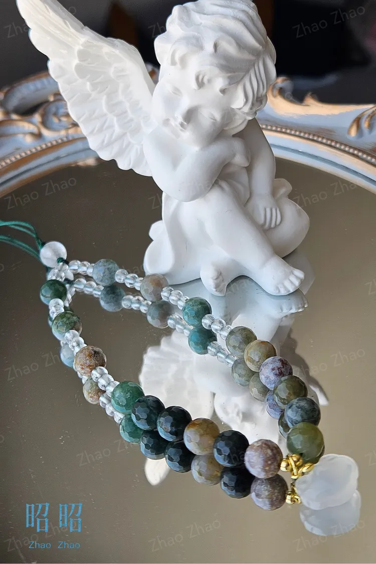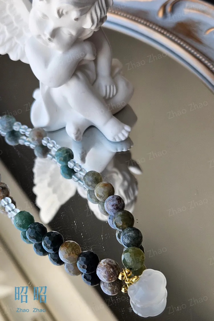 【JWQ37】水草瑪瑙白水晶手機鍊