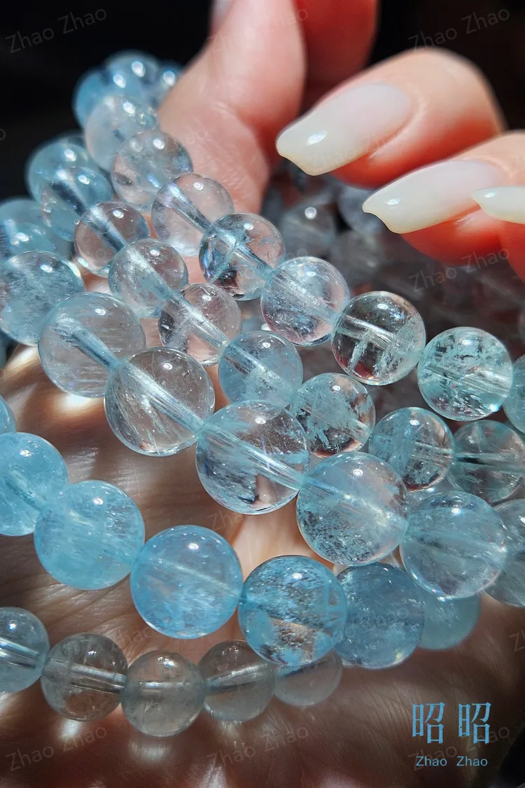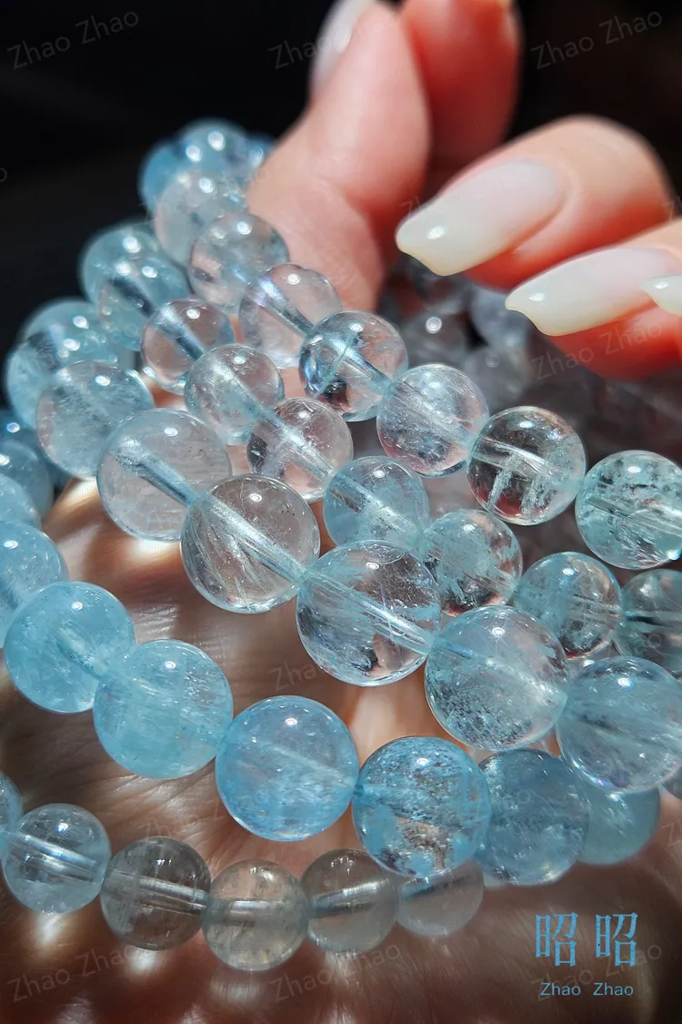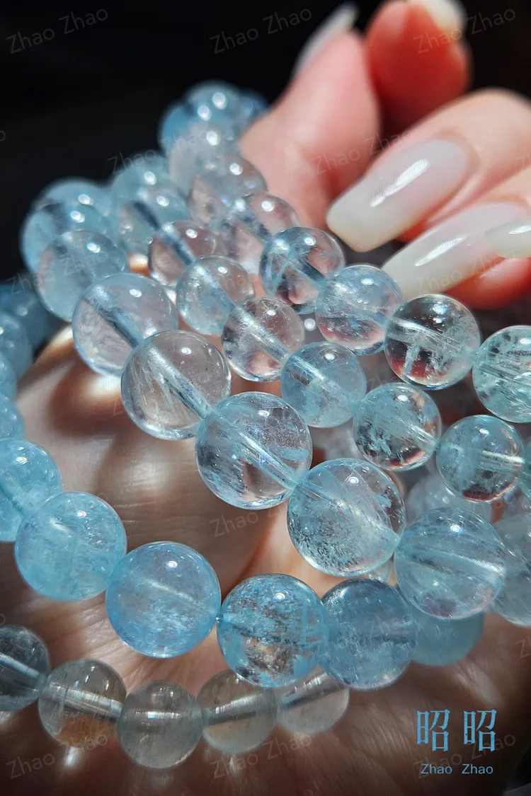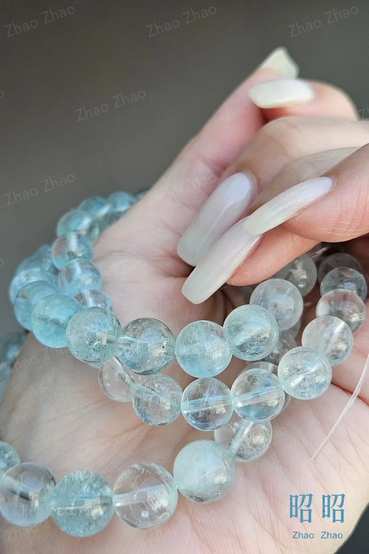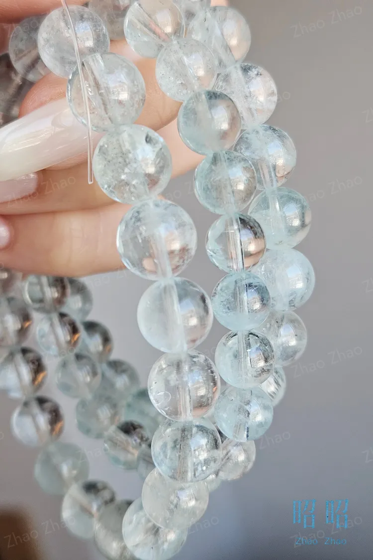 【JWQ39】限量!老礦冰透人緣吸引力海藍寶圓珠